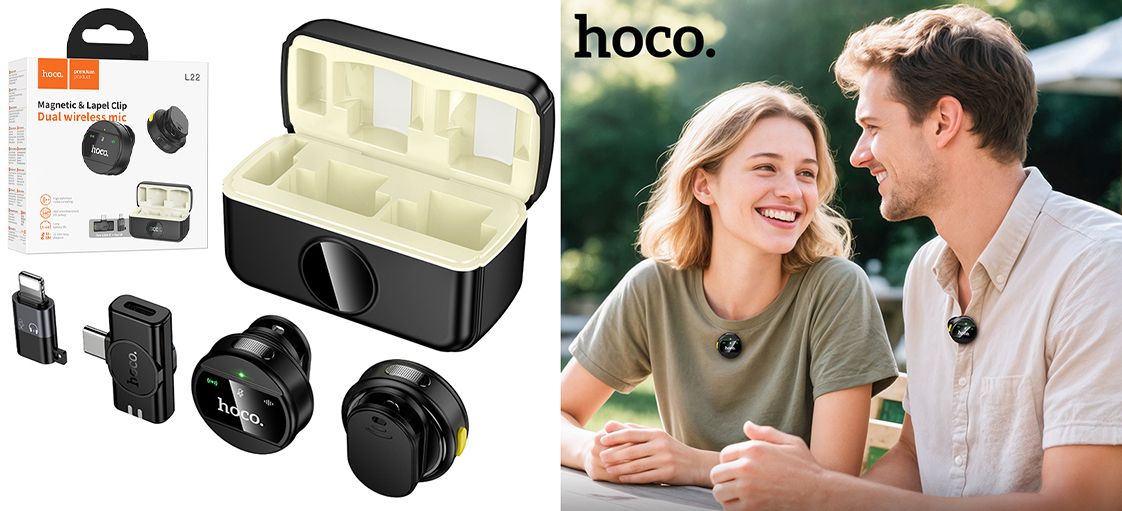 HOCO L22 — це професійний всенаправлений електретний бездротовий мікрофон із технологією ENC шумозаглушення, який забезпечує кристально чистий звук без спотворень у будь-яких умовах. Завдяки універсальному дизайну, він сумісний як із пристроями Apple (iPhone/iPad з портом Lightning), так і з Android-смартфонами через роз’єм Type-C. Ідеально підходить для створення відео, подкастів, стрімів, онлайн-уроків, інтерв’ю та контенту для соціальних мереж.