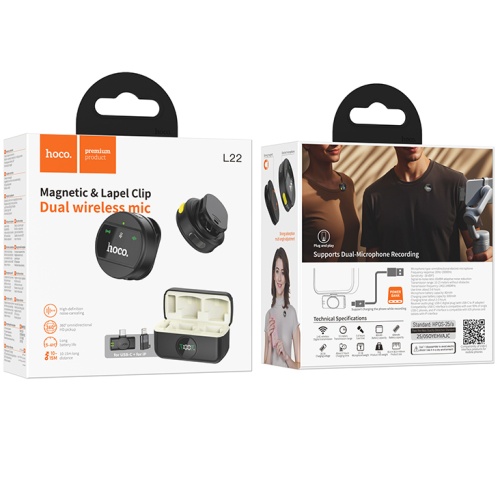 Мікрофон Петличний Бездротовий Hoco L22 Lightning Type-C (Чорний)