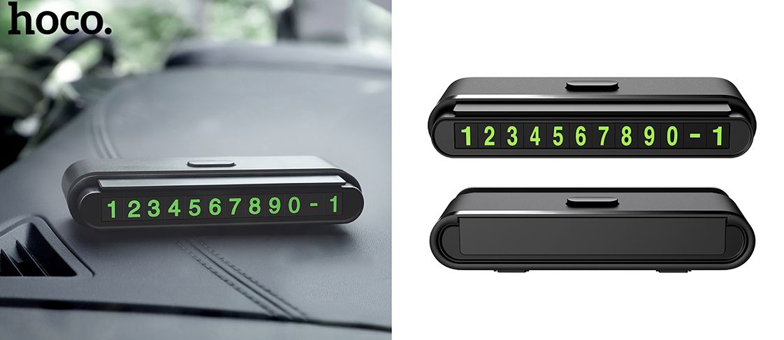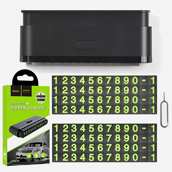 Паркувальна карта Hoco CPH19 One-click hidden signage Black призначена для введення особистого номера власника автомобіля під час паркування. Встановити номер телефону на ньому дуже просто за допомогою магнітних цифр, що входять до комплекту.
