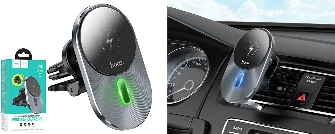 Автотримач Hoco CA91 з безпровідним зарядним пристроєм