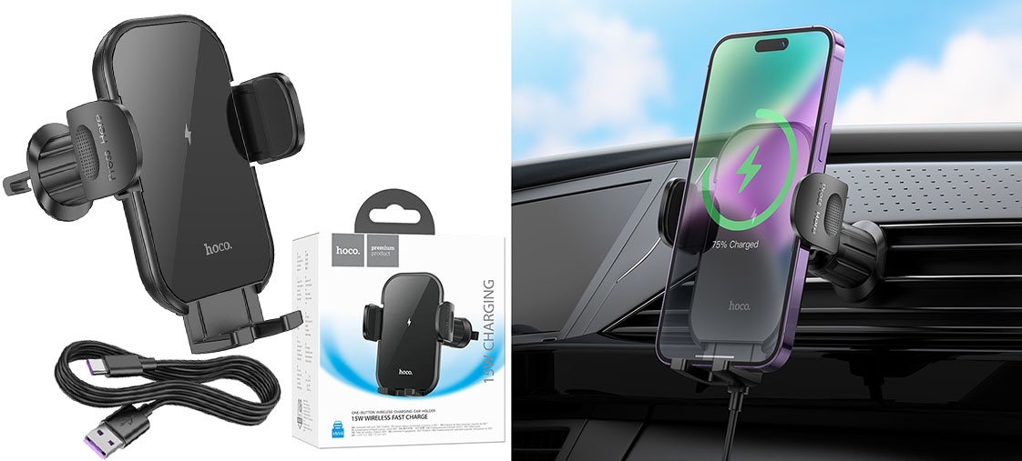 Автотримач Hoco HW4 з безпровідним зарядним пристроєм