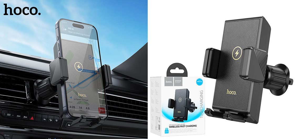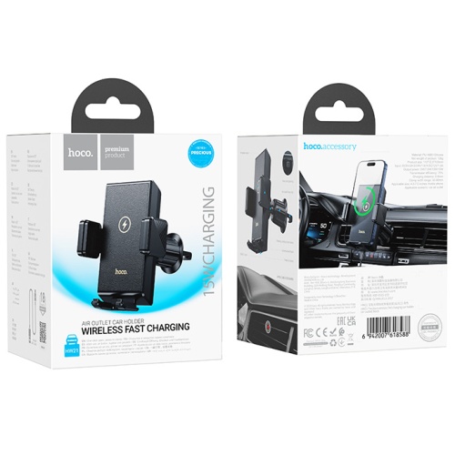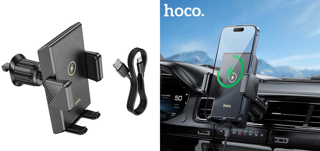 Автотримач Hoco HW21 з безпровідним зарядним пристроєм (Чорний)