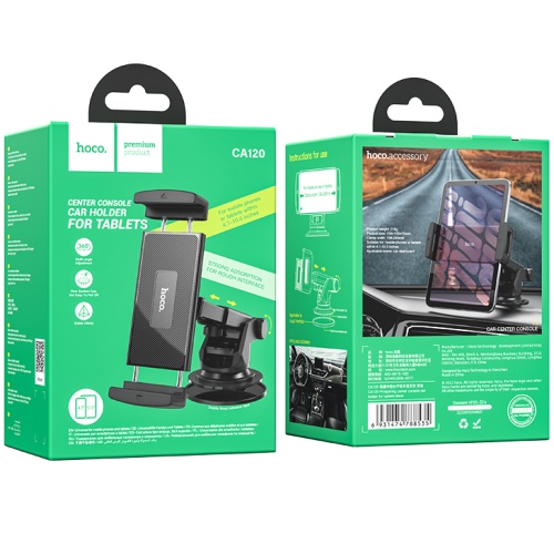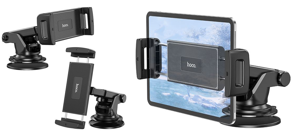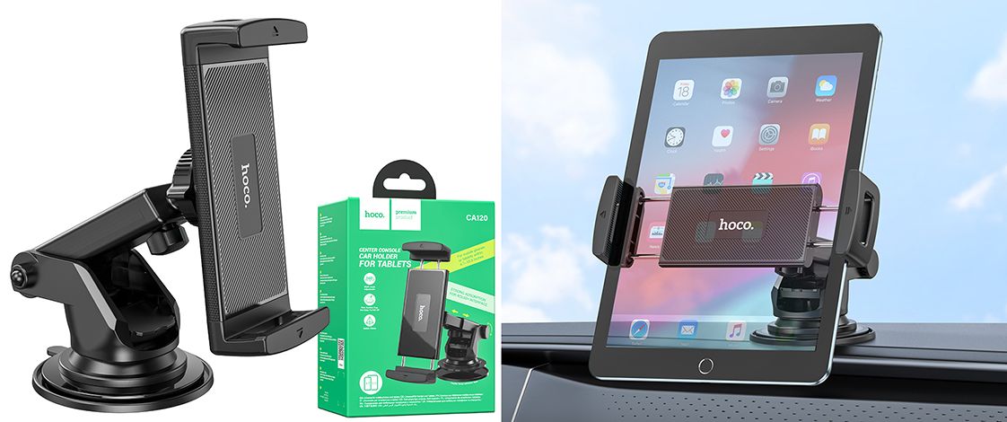 HOCO CA120 – чудовий приклад універсального автотримача, який зможе утримувати як ваші планшети, так і телефони середніх та великих розмірів. Тримач кріпиться на торпедо або лобове скло, і утримує аксесуари від 4.7 до 10.5 дюймів діагоналі. Шарнірний механізм дозволить вам повертати девайс як найбільш зручно.