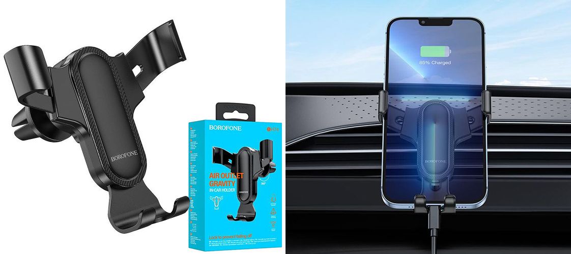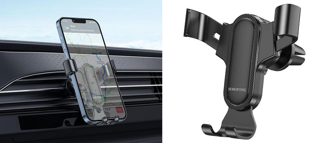 Гравітаційний автомобільний тримвач Borofone BH74 – це автомобільний тримач для смартфонів, який встановлюється у дефлектор системи вентиляції автомобіля.