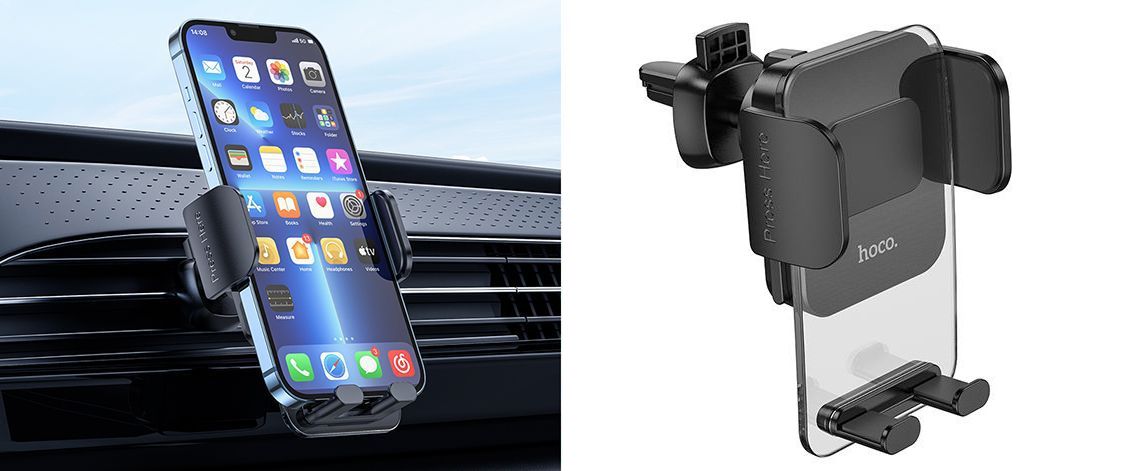 Смартфон кріпиться безпечно за допомогою розсувної системи із бічними фіксаторами. Девайс можна заряджати, не знімаючи з утримувача. Управління механізмом здійснюється кнопками на бічних гранях. Утримувач сумісний з гаджетами діагоналлю від 4.5 до 7.0 дюймів, завдяки діапазону захоплення в 60-86 мм. Він кріпиться на вентиляційну решітку шарнірним з'єднанням, що дозволяє регулювати кут обертання до 360 градусів.