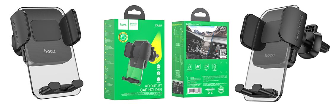 Автотримач у повітроводі Hoco CA117 чорного кольору є стильним і практичним пристроєм. Його дизайн привабливий, він зручний у використанні та підходить для будь-якого сучасного автомобіля завдяки компактним розмірам та прозорій тонованій панелі.Тримач виготовлений з ABS пластику та полікарбонату із захисними накладками із силікону.