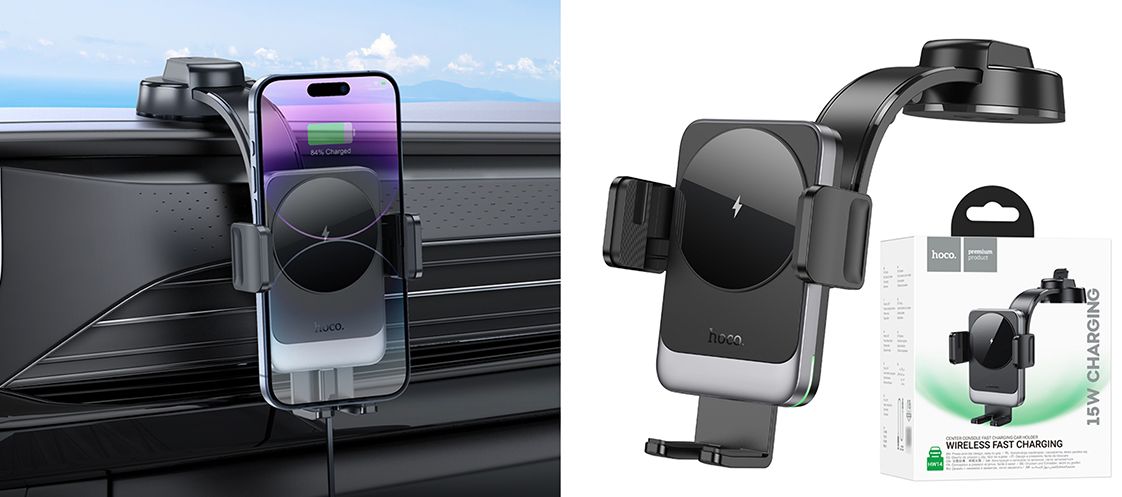 Автотримач Hoco HW14 з безпровідним зарядним пристроєм