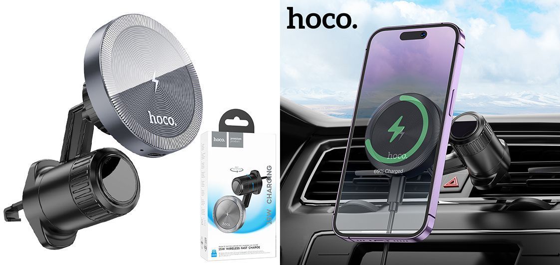 Автотримач Hoco HW6 з безпровідним зарядним пристроєм