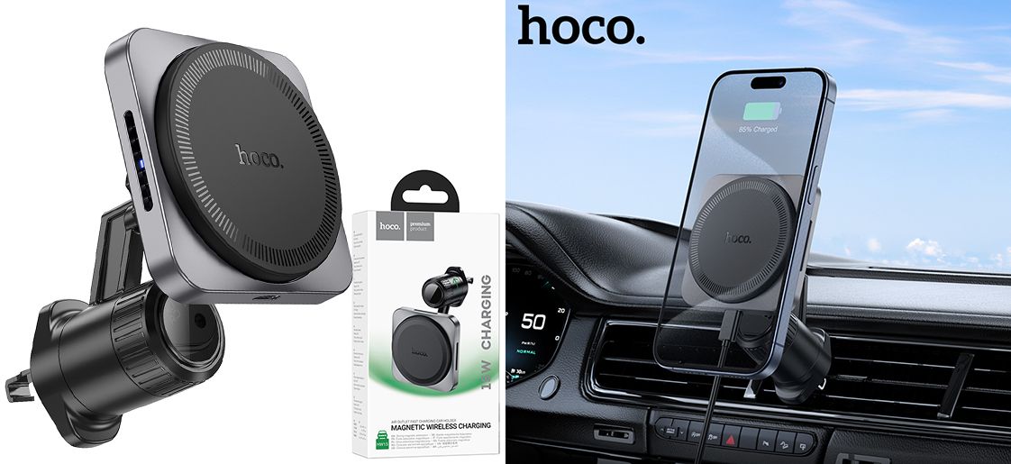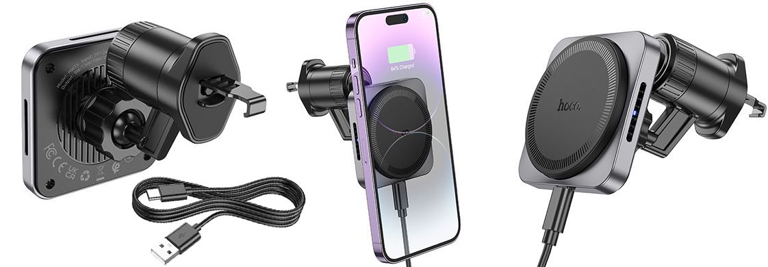 Автотримач Hoco HW15 з безпровідним зарядним пристроєм