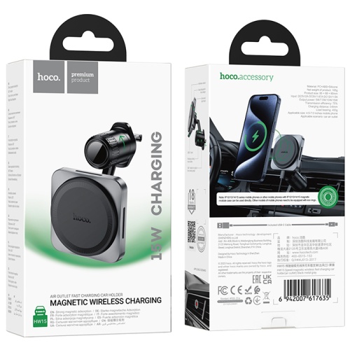 Тримач для автомобіля з функцією бездротової зарядки Hoco HW15 є інноваційним пристроєм для сучасних водіїв, які цінують зручність та безпеку на дорозі. Цей універсальний тримач оснащений потужними магнітами, що надійно утримують смартфон, забезпечуючи його стабільність навіть на нерівній дорозі. Завдяки вбудованій бездротовій зарядці Hoco HW15 забезпечує швидке та ефективне зарядне з'єднання для різних моделей телефонів, включаючи останні серії iPhone та інші пристрої з металевим кільцем (у комплекті). Силіконова поверхня тримача забезпечує додаткове зчеплення та захист вашого пристрою від подряпин та пошкоджень.