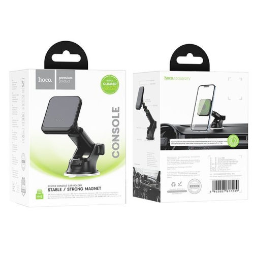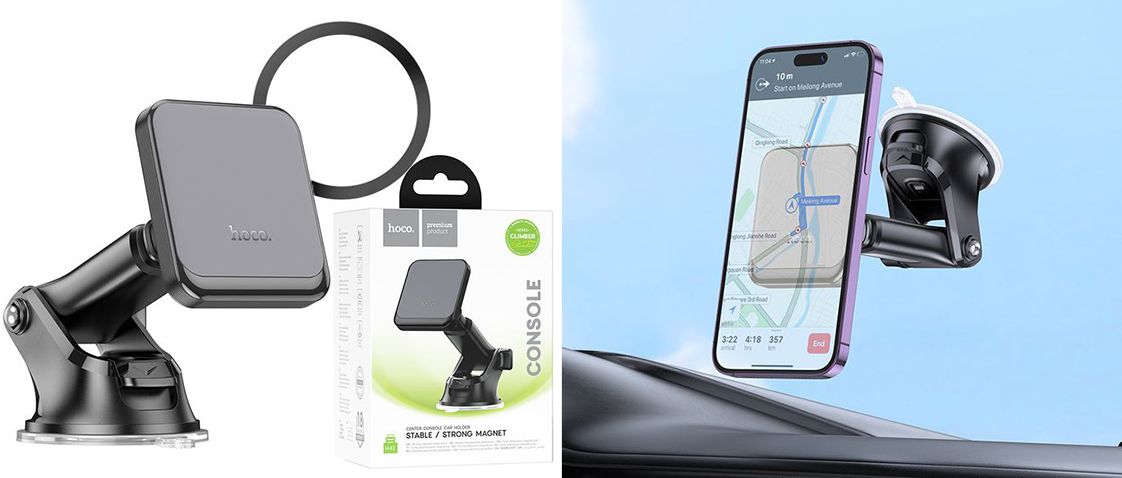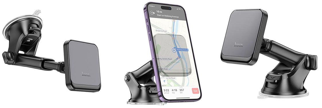 Автомобільний тримач Hoco H41 можна встановити на лобове скло або торпедо за допомогою вакуумної присоски, що дозволяє вибрати зручне місце для розміщення пристрою. Телефон кріпиться магнітом, для цього на пристрій наклеюється металева пластина в комплекті з магнітною підставкою.