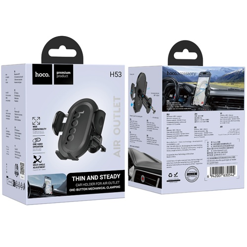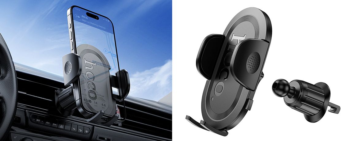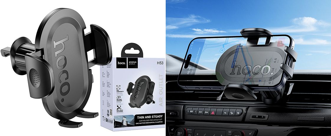 Тримач для телефону в машину в повітровод HOCO H53— це стильний та функціональний аксесуар, призначений для кріплення мобільного пристрою в повітроводі вашого автомобіля. Завдяки цьому тримачу ваш телефон завжди буде під рукою і легкодоступний для використання, не заважаючи вашому огляду на дорозі.