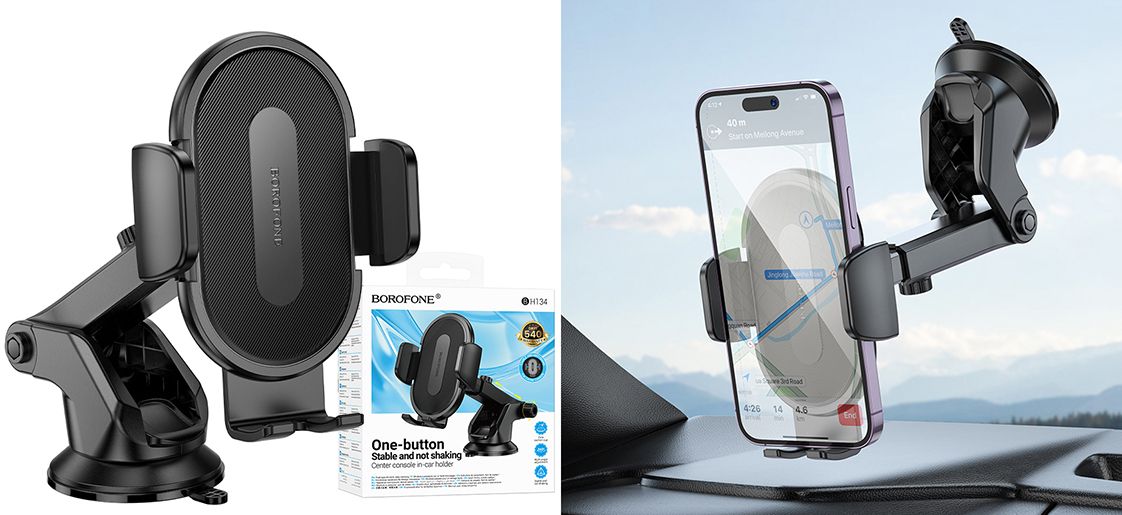 Тримач для мобільного Borofone BH134 4.5-7 inch — це стильний і зручний тримач для смартфона, який легко кріпиться на центральну консоль автомобіля. Завдяки простому механізму встановлення та міцній фіксації, цей аксесуар забезпечує безпечне розміщення вашого телефону під час поїздок, дозволяючи зручно використовувати його для навігації або дзвінків у режимі "вільні руки".