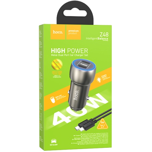 Автомобільний зарядний пристрій HOCO Z48 (Type-C to Lightning) — це унікальний аксесуар, створений з використанням якісних матеріалів та високотехнологічних електронних компонентів. В комплекті йде кабель Type-C - Lightning довжиною 1 м.