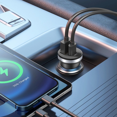 Автомобільний зарядний пристрій Earldom ES-CC27 Aluminium 30W 1USB/QC3.0 + 1Type-C/PD (Чорний)