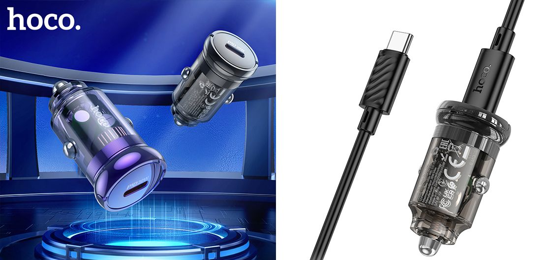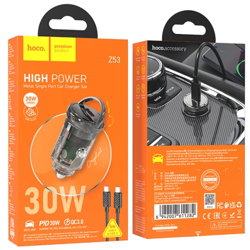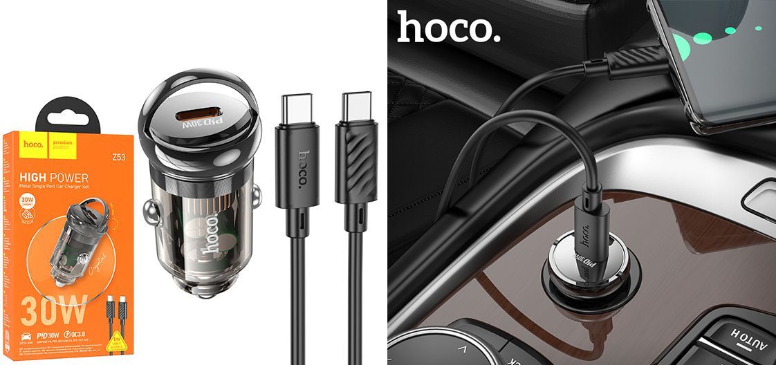 Автомобільний Зарядний Пристрій Hoco Z53 1Type-C/30W/PD + (Type-C - Type-C) (Чорний)