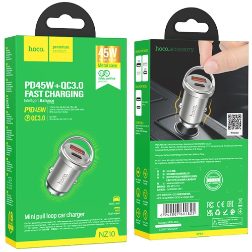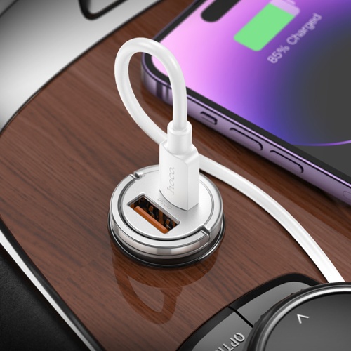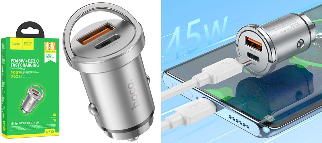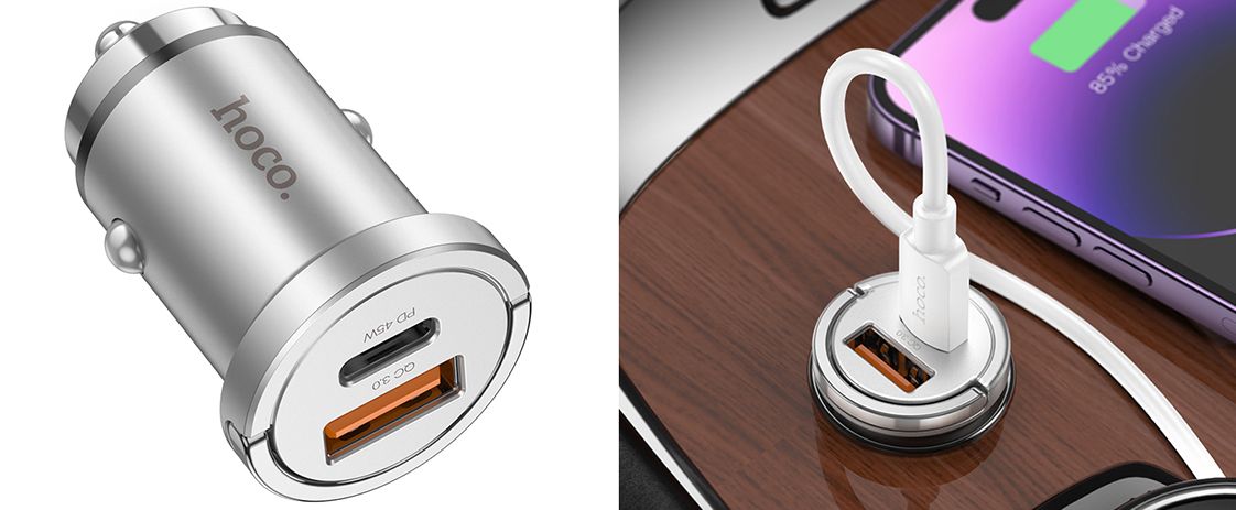 Дизайн HOCO NZ10 підкреслює витончений стиль із сріблястим корпусом, що додає елегантності вашому автомобілю. Компактність і легкість в установці роблять використання цього зарядного пристрою неймовірно зручним, доповнюючи ваш повсякденний комфорт.