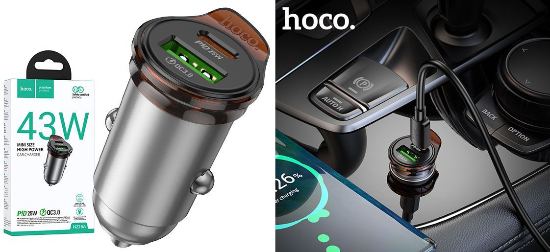 Hoco NZ16A призначене для безпечної та ефективної зарядки портативних гаджетів від гнізда прикурювача автомобіля. Його виняткова надійність гарантує тривалий термін служби та стабільну роботу, а підтримка поширених протоколів швидкої зарядки значно скоротить годину заряду сумісних смартфонів.