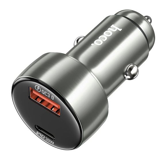Автомобільний Зарядний Пристрій Hoco Z50 PD30W+QC3.0 (1Type-C/1USB/3A/48W) (сірий)