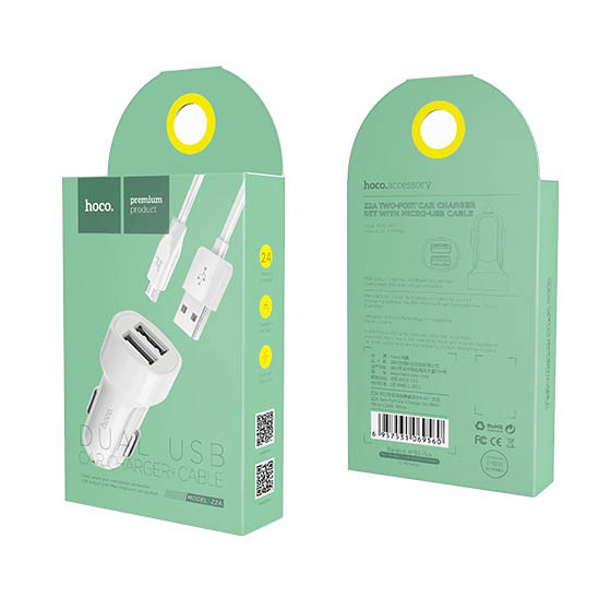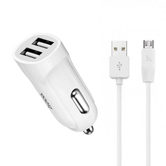 Автомобільний Зарядний Пристрій Hoco Z2A 2USB/2.4A + (USB - MicroUSB) (Білий)