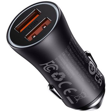 Автомобільний Зарядний Пристрій Baseus Square Metal (CCALL-DS01) 2USB/30W/QC3.0 (Black)