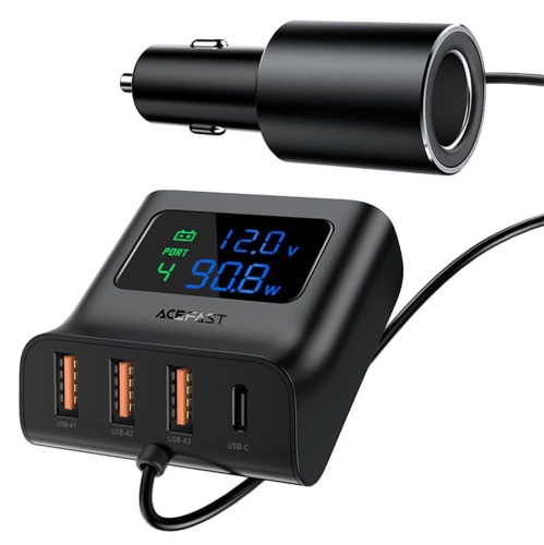 Автомобільний Зарядний Пристрій Acefast B5 PD + QC 4.0 (2 Type-C/1 USB/3A/101W) (чорний)