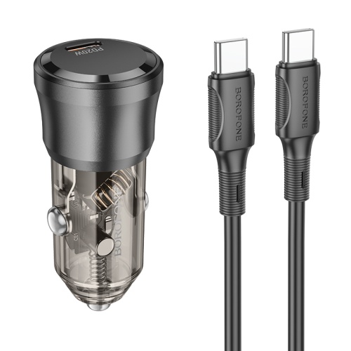 Автомобільний Зарядний Пристрій Borofone BZ24 1USB-C QC/PD20W + (Type-C - Type-C) (Прозоро-чорний)