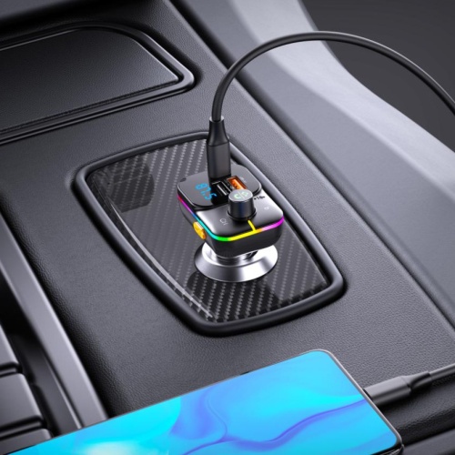 На верхній панелі модулятора знаходяться великі кнопки і функціональний регулятор, LED дисплей, який відображає вхідну напругу і частоту FM, отвір вбудованого мікрофона, пара USB роз'ємів (A1 і A2) і роз'єм Type-C. Бездротовий зв'язок зі смартфоном забезпечується модулем Bluetooth V5.0, а програвання музики з флеш накопичувачів та карти пам'яті - одним із USB портів (A2) та слотом TF. Роз'єм Type-C підтримує швидке заряджання гаджетів за протоколом PD з максимальною потужністю 25W (5V/3A, 9V/2.77A). Сила струму на виході роз'ємів USB дорівнює 3.1A при напрузі 5V (A1) та 1A при напрузі 5V (A2). Вхідна напруга: 12-24V.