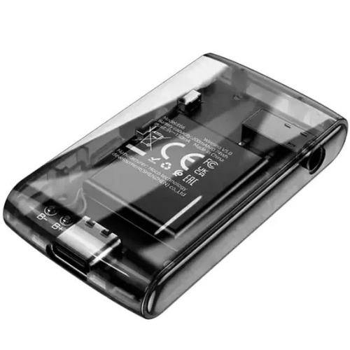Hoco E66 виконаний у легкому, прозорому та компактному корпусі. Його вага складає 17 г, а розміри: 33х60х12 мм. Для такого програвача знайдеться місце не лише в бардачку, а й у кишені куртки. Тому його можна завжди носити при собі, щоб підключати до провідної колонки або повнорозмірних навушників.