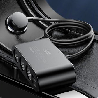 Розгалужувач прикурювача XO CC40 6A 60W (3 порта + 2USB) (Чорний)