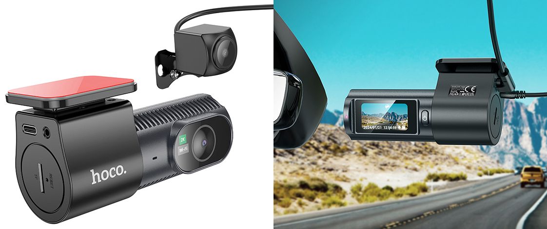 Відеореєстратор Hoco DV8 2K на лобове скло в авто + камера заднього виду Чорний - Це 2K відеореєстратор із прихованим дизайном та додатковою задньою камерою. Завдяки високій роздільній здатності відео 2560х1440 і широкому куту огляду 140°, він забезпечує якісний запис подій на дорозі. Можливість підключення задньої камери та підтримка великих карт пам'яті дозволяють використовувати його для відеоспостереження під час руху.