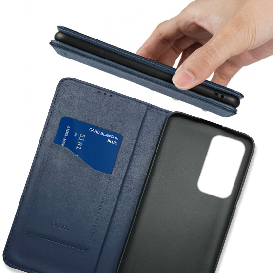 Внутрішня вкладка чохла-книжки виконана з міцного, цупкого, еластичного силікону темно-синього кольору. Вкладка щільно облягає смартфон, запобігаючи його вислизанню з чохла і забезпечуючи захист телефону від бічних ударів.