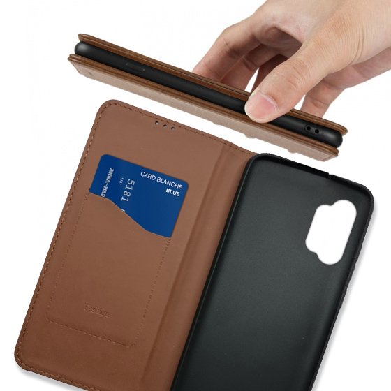 Стильний чохол-книжка Leather Fold для телефону моделі Samsung A135 Galaxy A13 виготовлено з високоякісної еко-шкіри коричневого кольору, яка по зовнішньому вигляду майже не відрізняється від натуральної шкіри.