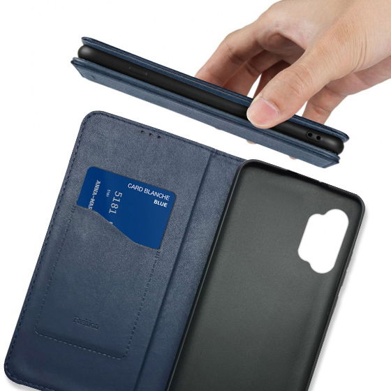 Стильний чохол-книжка Leather Fold для телефону моделі Samsung A135 Galaxy A13 виготовлено з високоякісної еко-шкіри темно-синього кольору, яка по зовнішньому вигляду майже не відрізняється від натуральної шкіри.