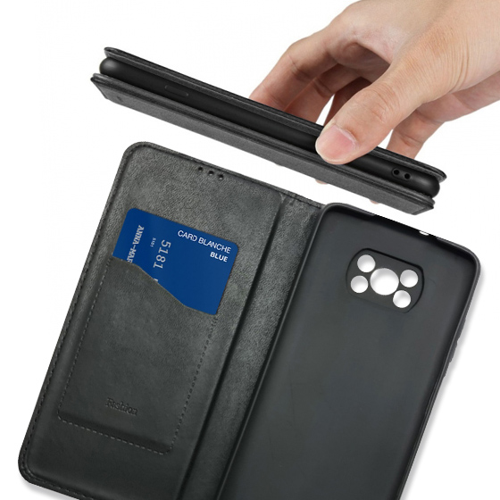 Стильний чохол-книжка Leather Fold для телефону моделі Xiaomi Poco X3/Xiaomi Poco X3 Pro виготовлено з високоякісної еко-шкіри чорного кольору, яка по зовнішньому вигляду майже не відрізняється від натуральної шкіри.