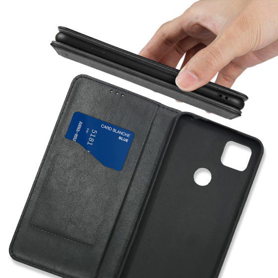 Стильний чохол-книжка Leather Fold для телефону моделі Xiaomi Redmi 9C виготовлено з високоякісної еко-шкіри чорного кольору, яка по зовнішньому вигляду майже не відрізняється від натуральної шкіри.