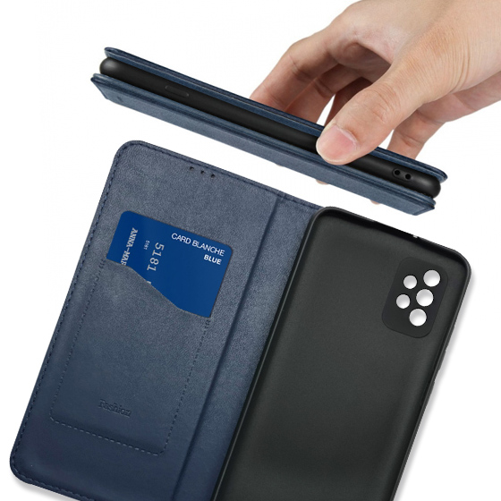 Стильний чохол-книжка Leather Fold для телефону моделі Samsung A325 Galaxy A32 4G виготовлено з високоякісної еко-шкіри темно-синього кольору, яка по зовнішньому вигляду майже не відрізняється від натуральної шкіри.