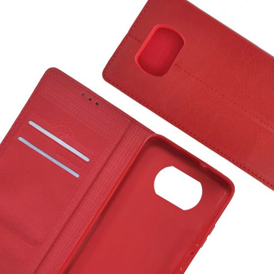 Стильний чохол-книжка Leather Fold для телефону моделі Xiaomi Poco X3/X3 Pro виготовлено з високоякісної еко-шкіри червоного кольору, яка по зовнішньому вигляду майже не відрізняється від натуральної шкіри.