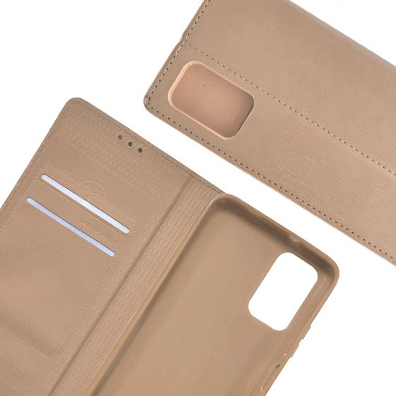 Стильний чохол-книжка Leather Fold для телефону моделі Xiaomi Redmi 9T виготовлено з високоякісної еко-шкіри золотого кольору, яка по зовнішньому вигляду майже не відрізняється від натуральної шкіри.