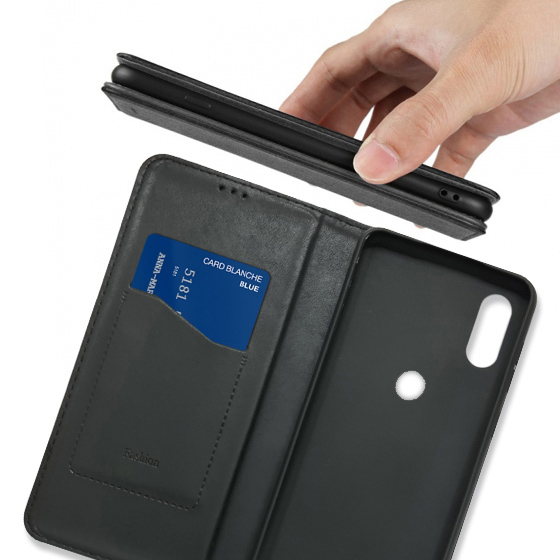 Стильний чохол-книжка Leather Fold для телефону моделі Motorola Moto E6S/Motorola Moto E6i виготовлено з високоякісної еко-шкіри чорного кольору, яка по зовнішньому вигляду майже не відрізняється від натуральної шкіри.