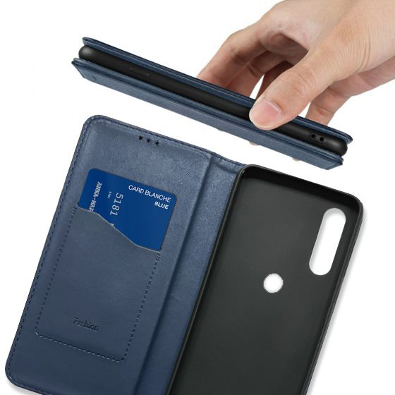 Стильний чохол-книжка Leather Fold для телефону моделі Motorola Moto E6S/Motorola Moto E6i виготовлено з високоякісної еко-шкіри темно-синього кольору, яка по зовнішньому вигляду майже не відрізняється від натуральної шкіри.