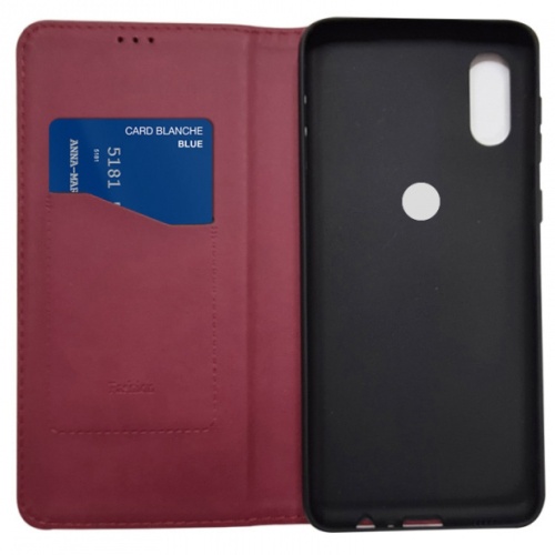 Стильний чохол-книжка Leather Fold для телефону моделі Motorola Moto E6S/Motorola Moto E6i виготовлено з високоякісної еко-шкіри темно-червоного кольору, яка по зовнішньому вигляду майже не відрізняється від натуральної шкіри.