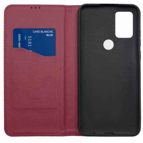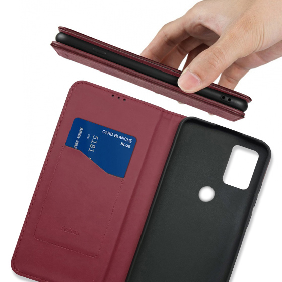 Стильний чохол-книжка Leather Fold для телефону моделі ZTE Blade A7S 2020 виготовлено з високоякісної еко-шкіри темно-червоного кольору, яка по зовнішньому вигляду майже не відрізняється від натуральної шкіри.