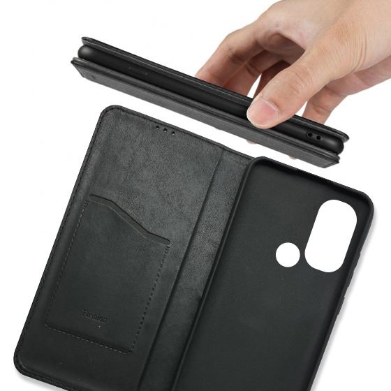 Стильний чохол-книжка Leather Fold для телефону моделі Motorola E20 виготовлено з високоякісної еко-шкіри чорного кольору, яка по зовнішньому вигляду майже не відрізняється від натуральної шкіри.