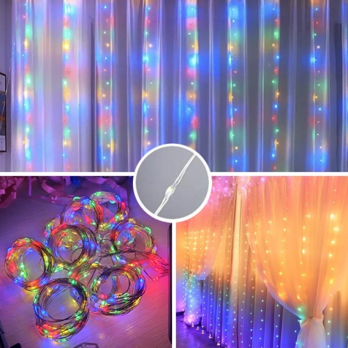 Гірлянда № 4 штора-роса 3*3м (кольорова/USB/Пульт)