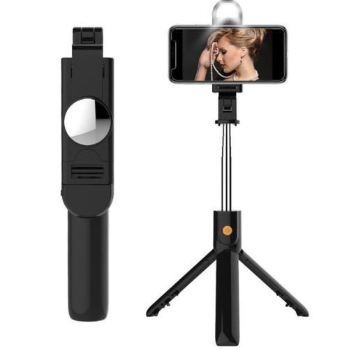 Монопод для селфі з триногою K10S (BT пульт, підсвічування) (чорний) |
