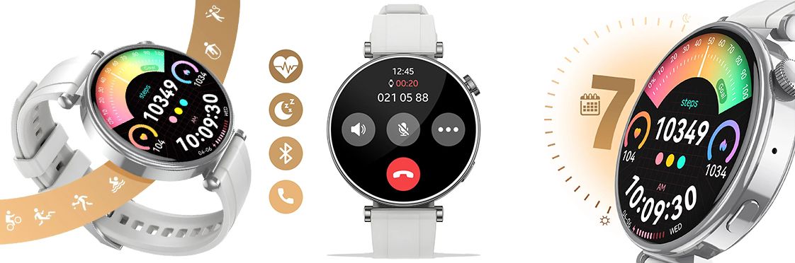 Основні функції годинника: дзвінки по Bluetooth, меню викликів, набір спортивних режимів, частота серцевих скорочень, артеріальний тиск, сатурація, прогноз погоди, управління музикою, SOS, світовий час, фондовий ринок, QR-код, пошук телефону.