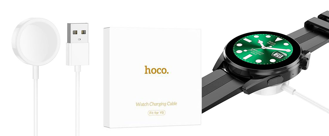 Кабель зарядки для годинника Hoco Y9 – це оригінальний аксесуар, здатний гарантувати абсолютно безпечний процес бездротової зарядки смарт годинника Hoco Y9. Модель реалізована в практичному дизайні, відрізняється тривалим терміном служби та високою надійністю. Її використання зведе до мінімуму можливість можливих пошкоджень акумулятора гаджета, викликаних нестабільною роботою електромережі. Вхідний USB (male) роз'єм надасть можливість використовувати як джерело живлення будь-який відповідний пристрій, наприклад, повербанк або мережевий адаптер.