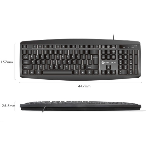 1. Повнорозмірна конструкція: це означає, що Fantech KM-100 має всі необхідні вам клавіші як на клавіатурах, які ви використовуєте в школі;2. 104-клавішна конструкція;