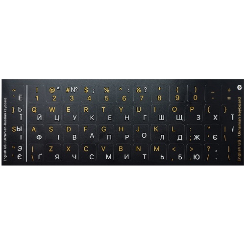 Наклейки на клавіатуру Чорна (сині і жовті букви) двохшарові, нестираючі